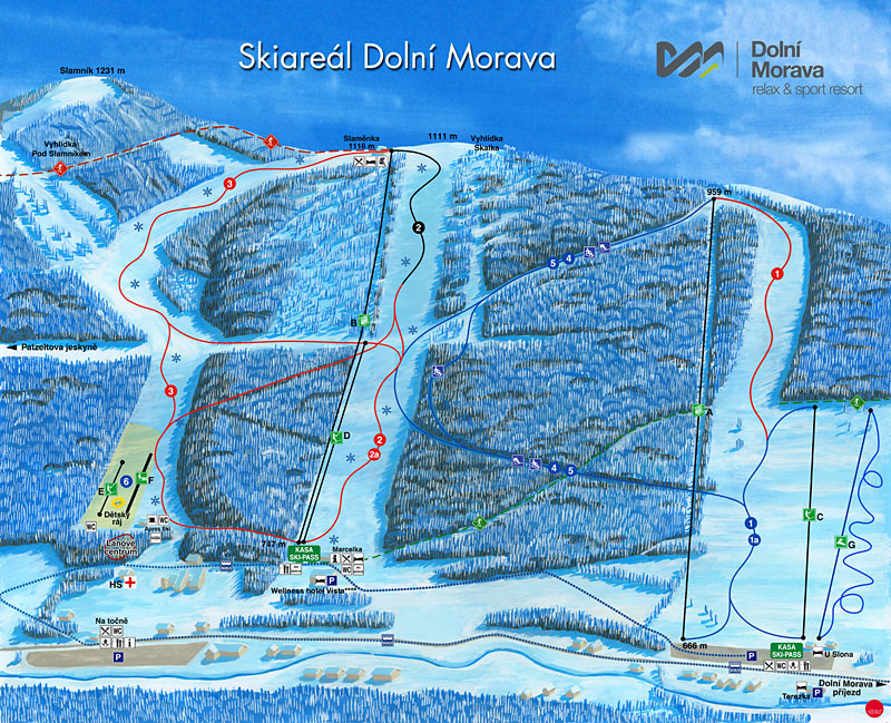- Více než 10 km sjezdovek všech stupňů obtížnosti se sportovními profily i bezpečnými a širokými rodinnými tratěmi